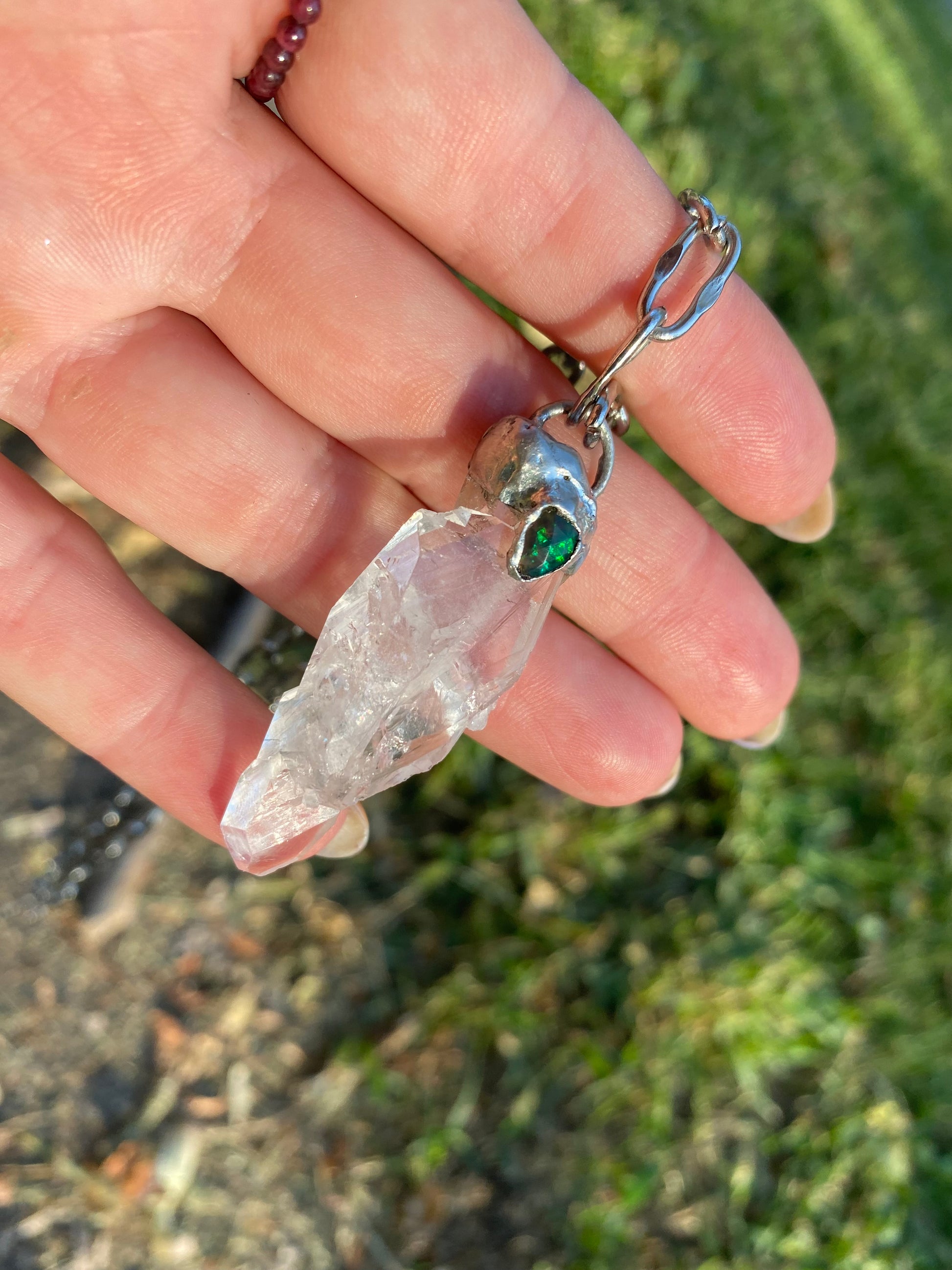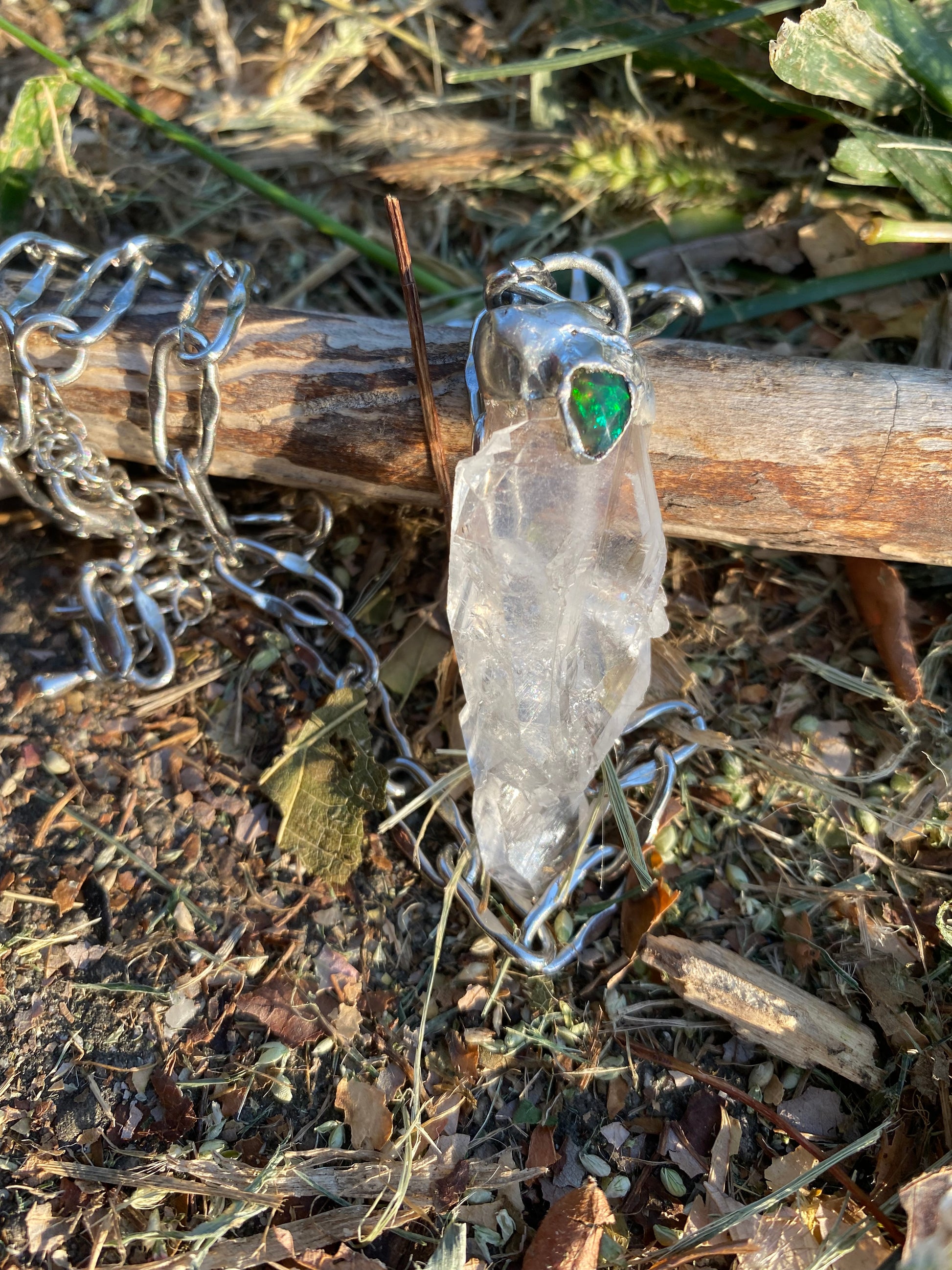 Stone Type: Black Ethiopian Opal (faceted) & Faden Quartz