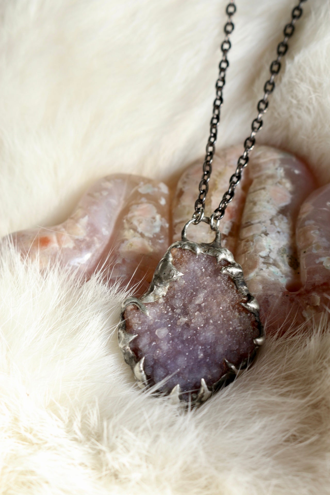 The energy of this collection is conjured from loving feminine energy to empower and spiritually nourish its wearer. This intimate collection is inspired with balance of soft, loving and powerful warrior attributes. All pieces one of a kind.