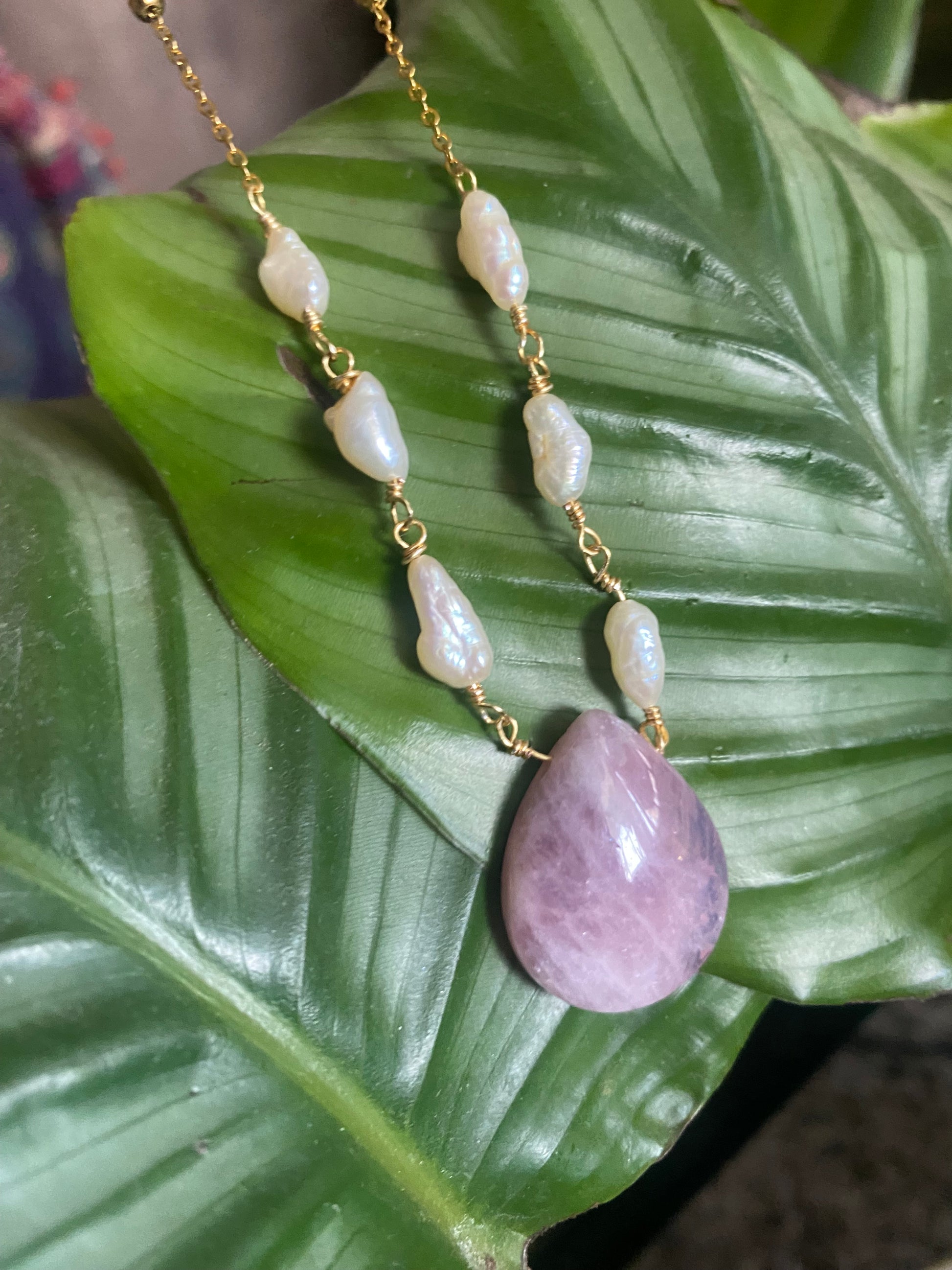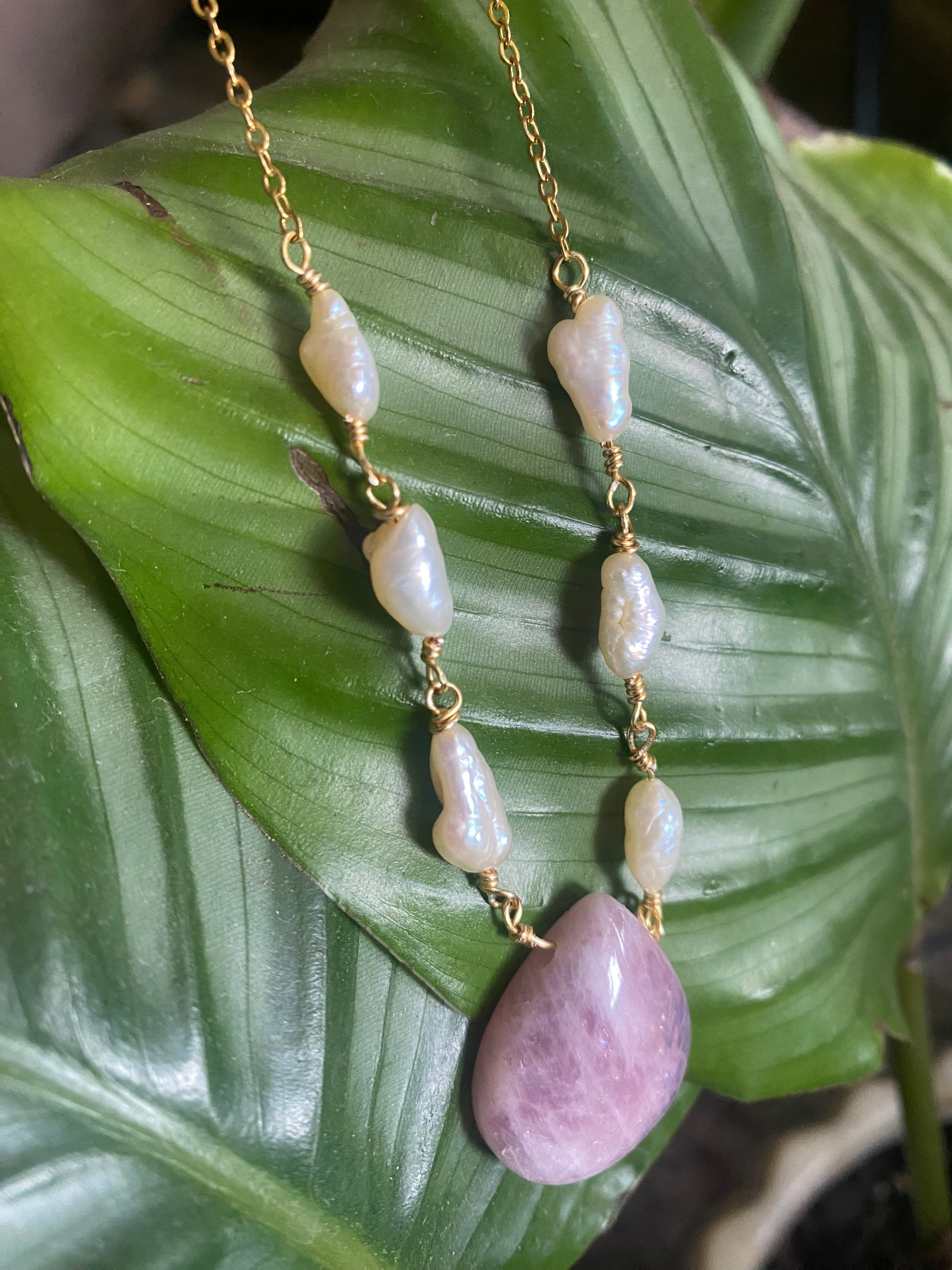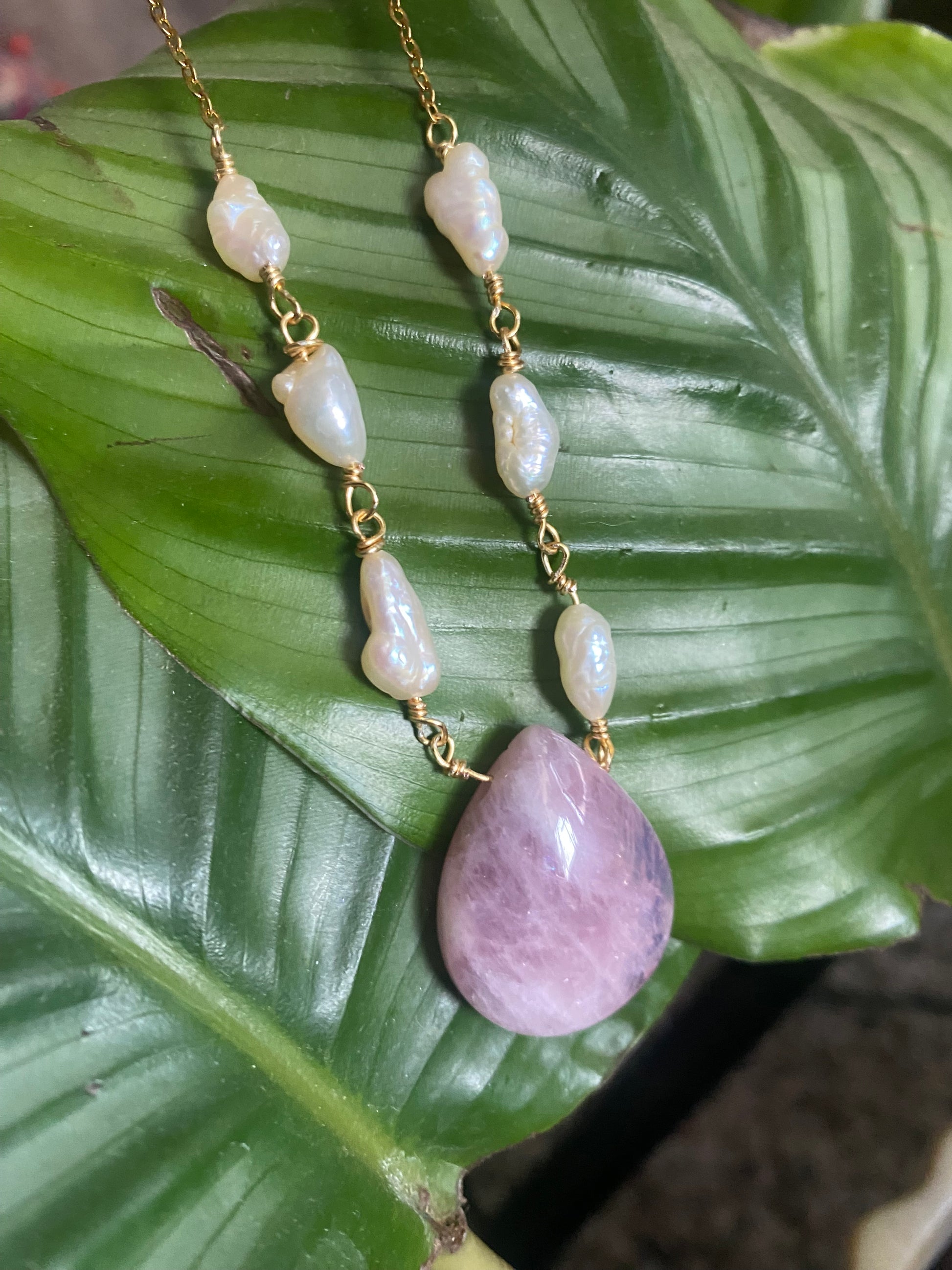 Stone Type: baroque Pearl, Madagascar Pink Quartz