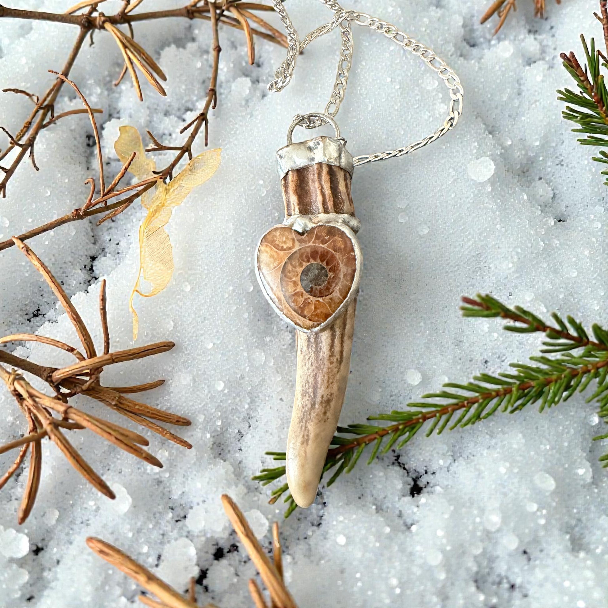 Stone Type: Heart-Shaped Ammonite and White Tail Deer Antler