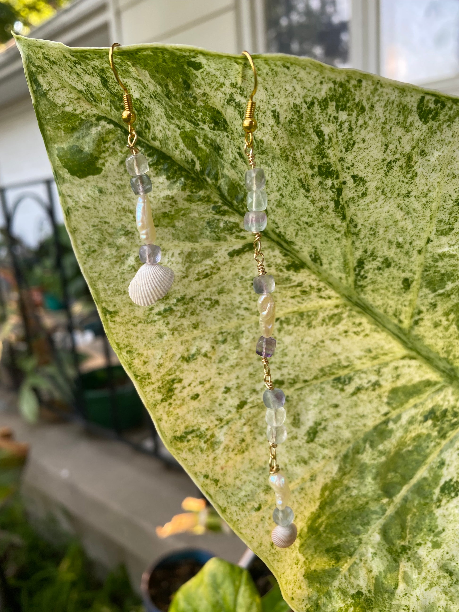 Stone Type: Hand-Collected Seashells from the Gulf, Vintage Genuine Pearl, and Rainbow Fluorite