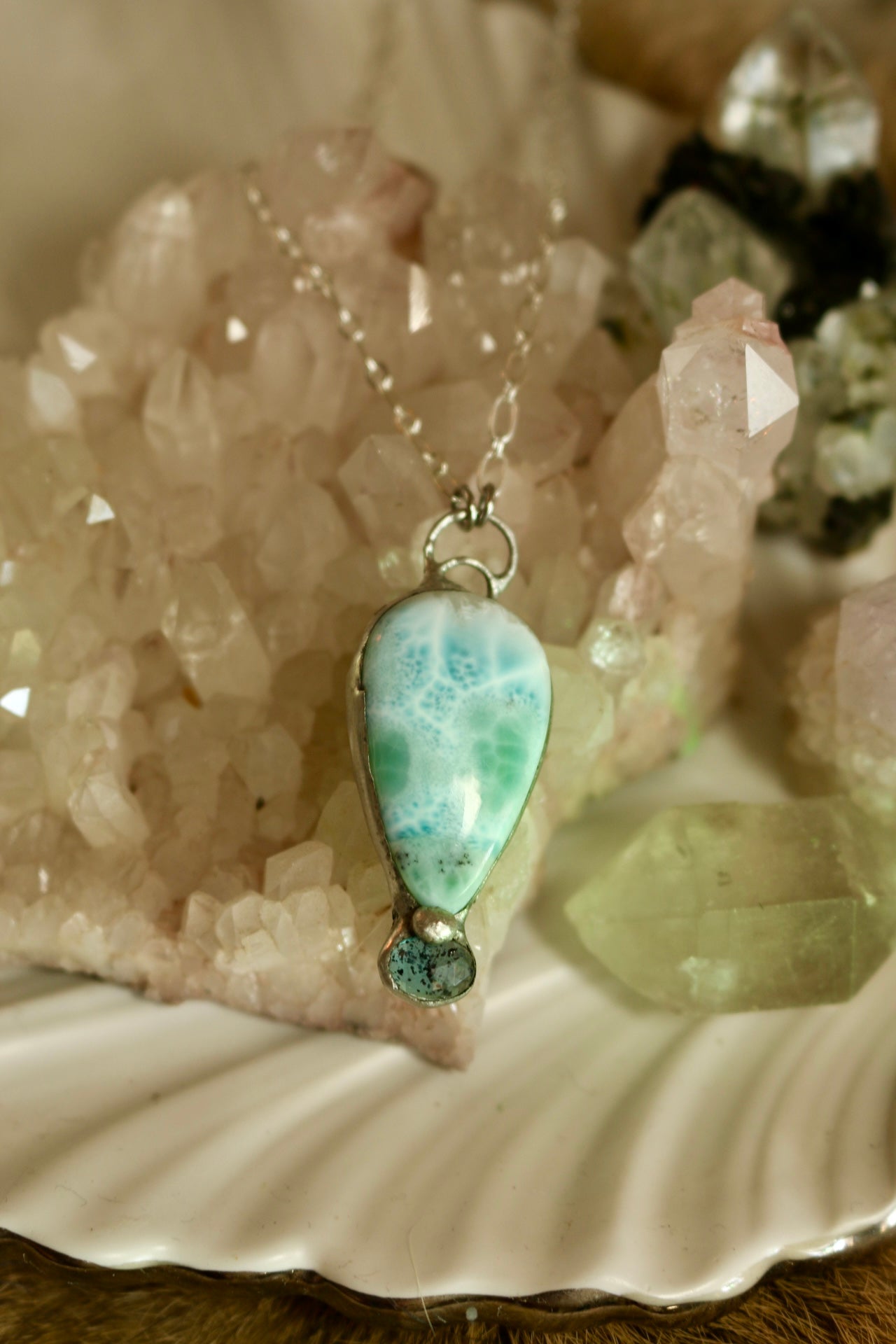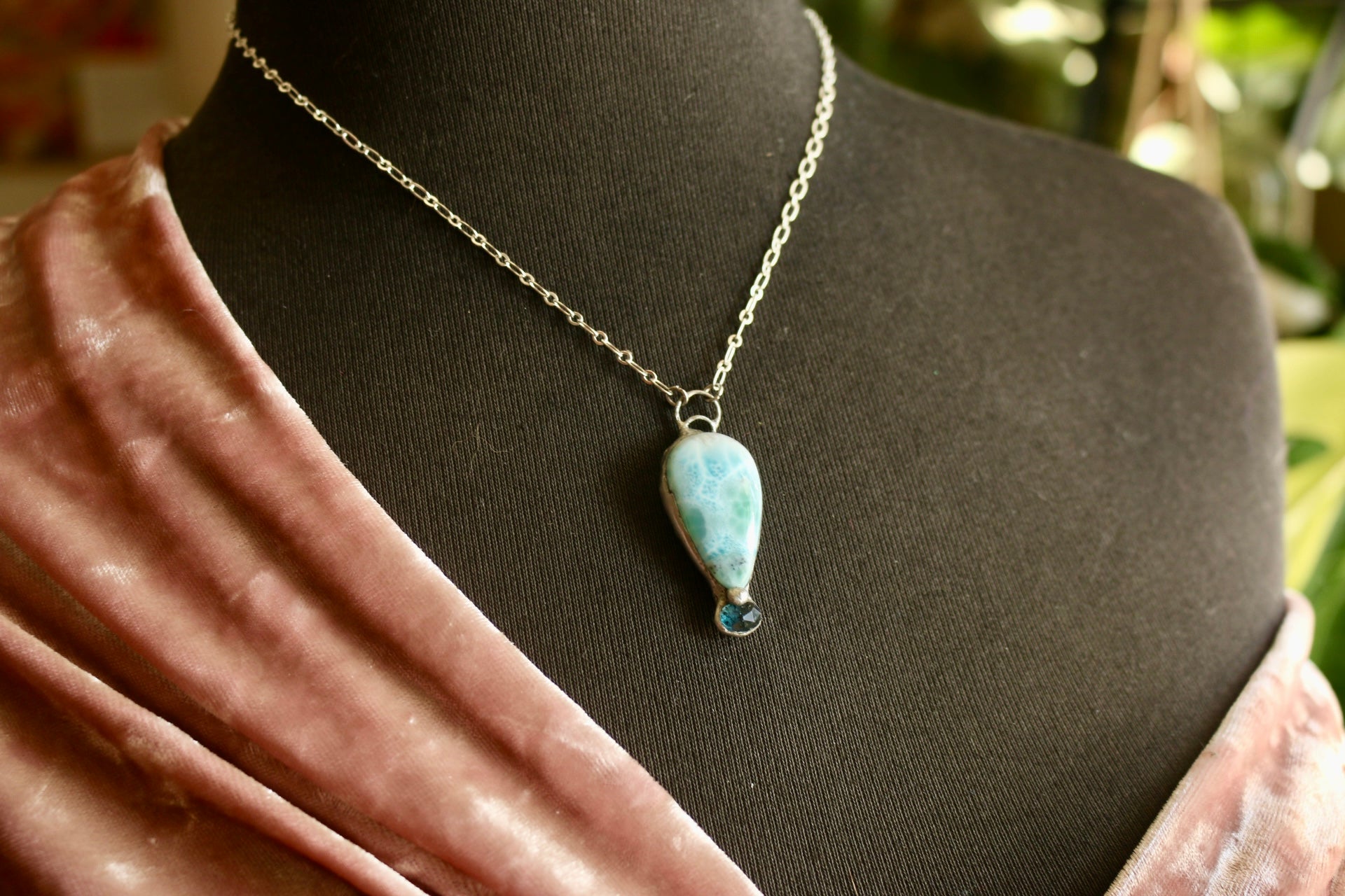 Stone Type: AA grade Larimar, Moss Kyanite
