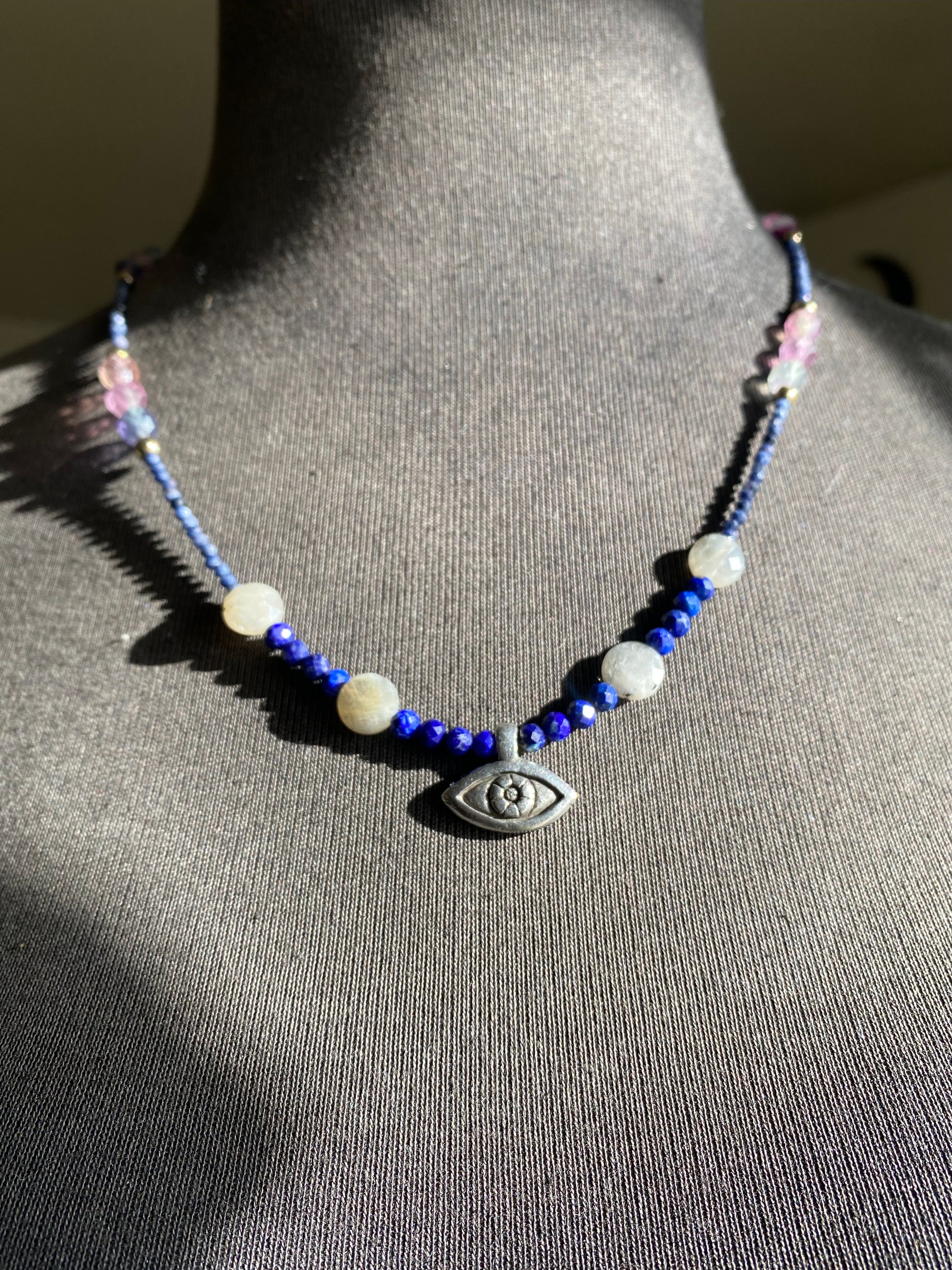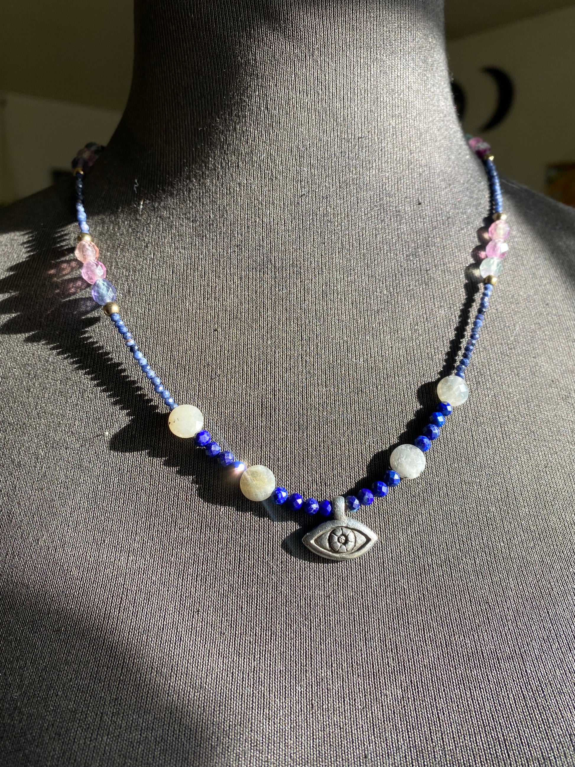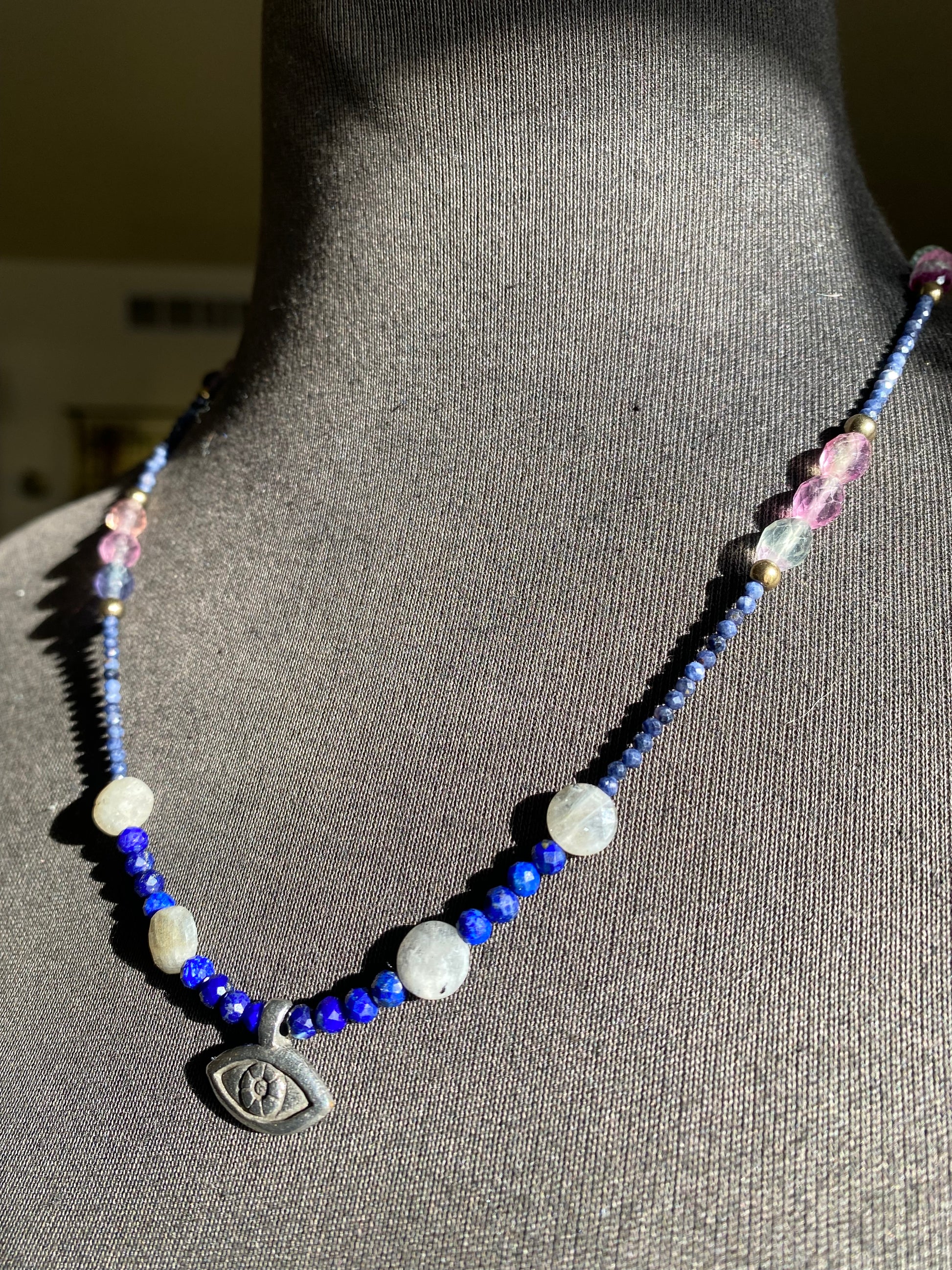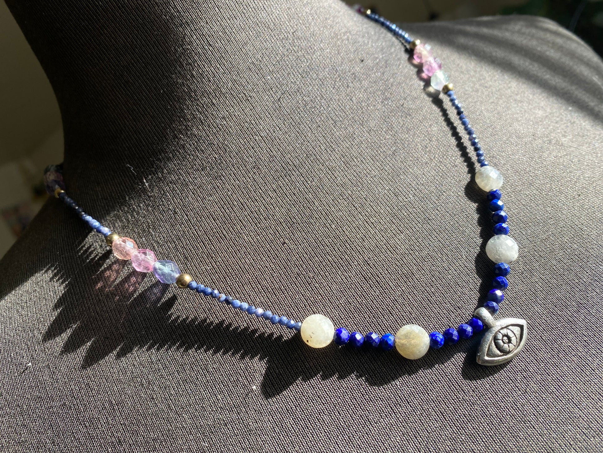Stone Type:ย Labradorite, Lapis Lazuli, Rainbow Fluorite, Blue Sapphireย
